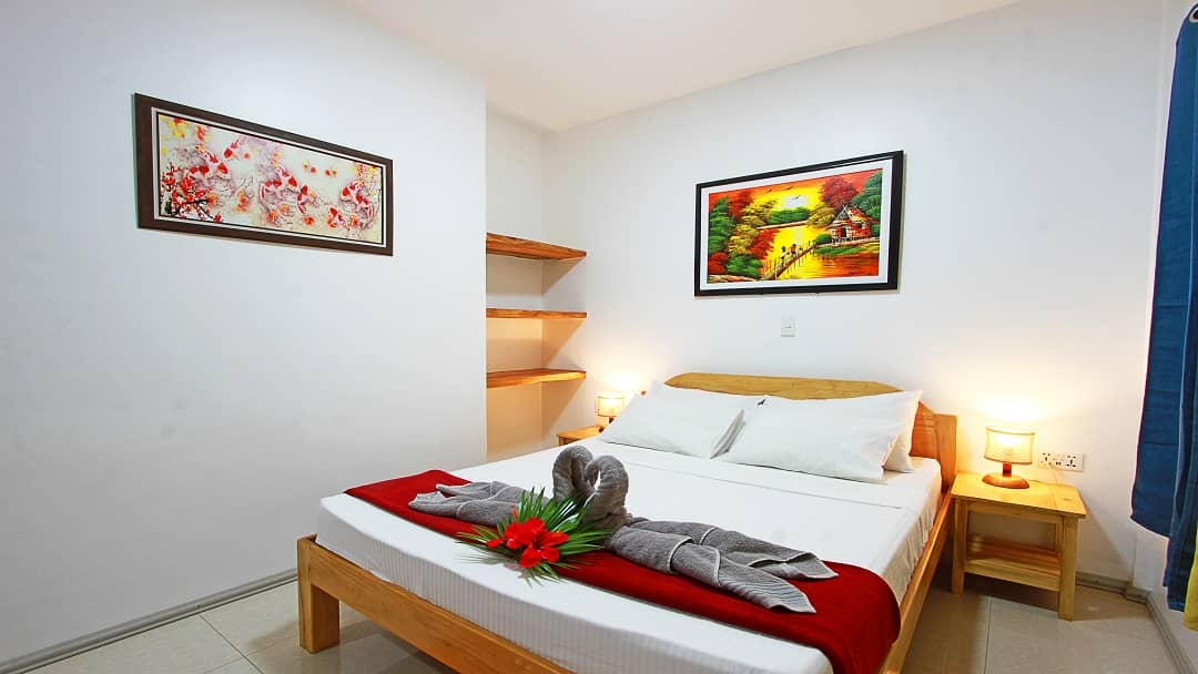 Built in the local style, yet with the comforts of home. This accommodation provides a clean and comfortable base for exploring Moalboal and surrounding areas. Each unit comfortably accommodates two guests and has a private bathroom (with a hot/cold water shower), a mini-fridge, air-conditioning, a safety deposit box, patio seating area with chairs and a coffee table, and a garden view. The room is on the 1st floor and can only be reached by stairs.